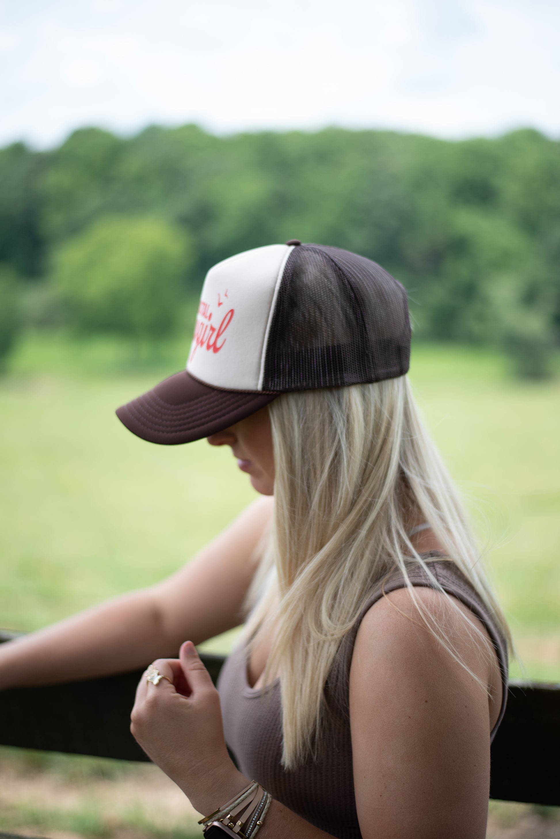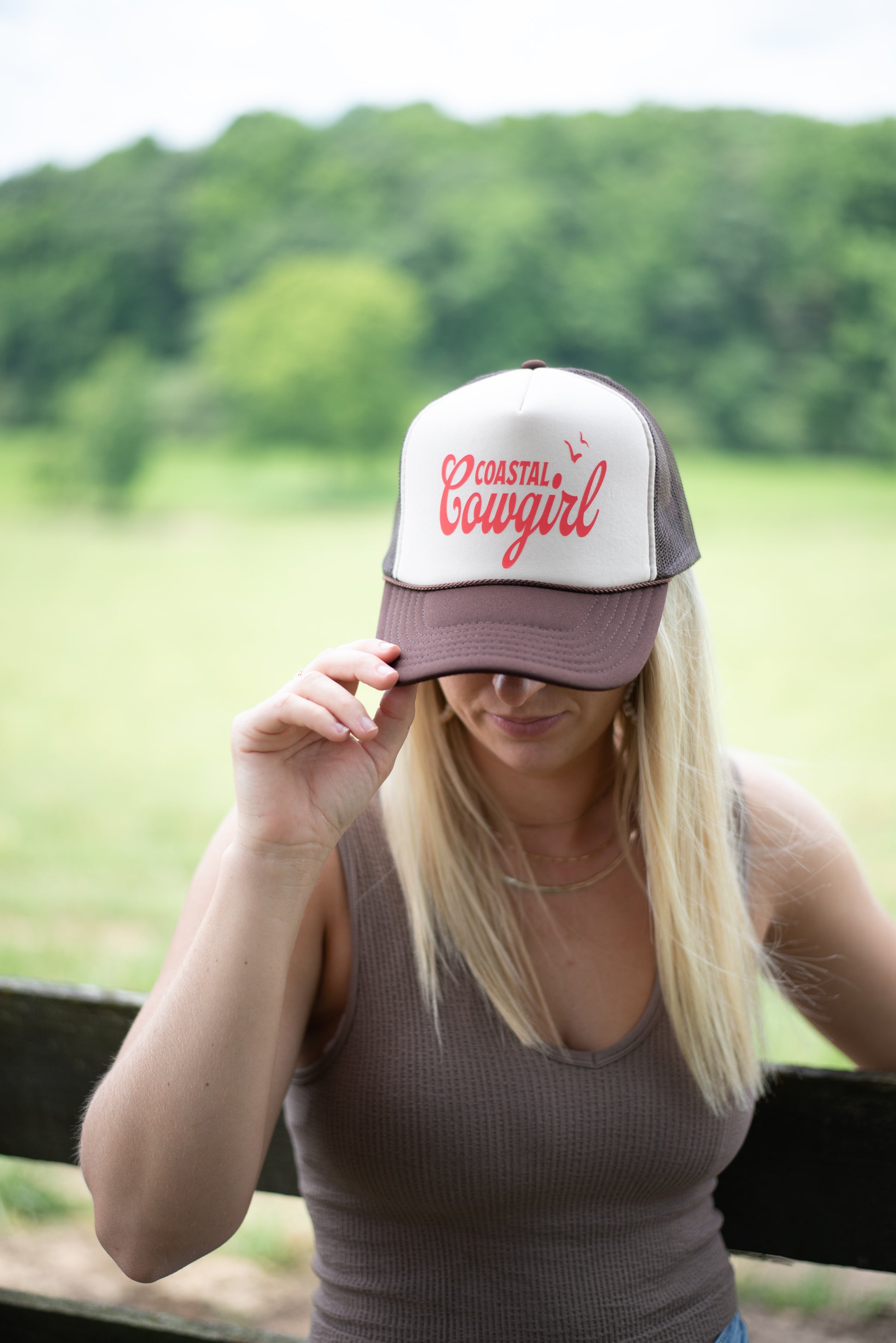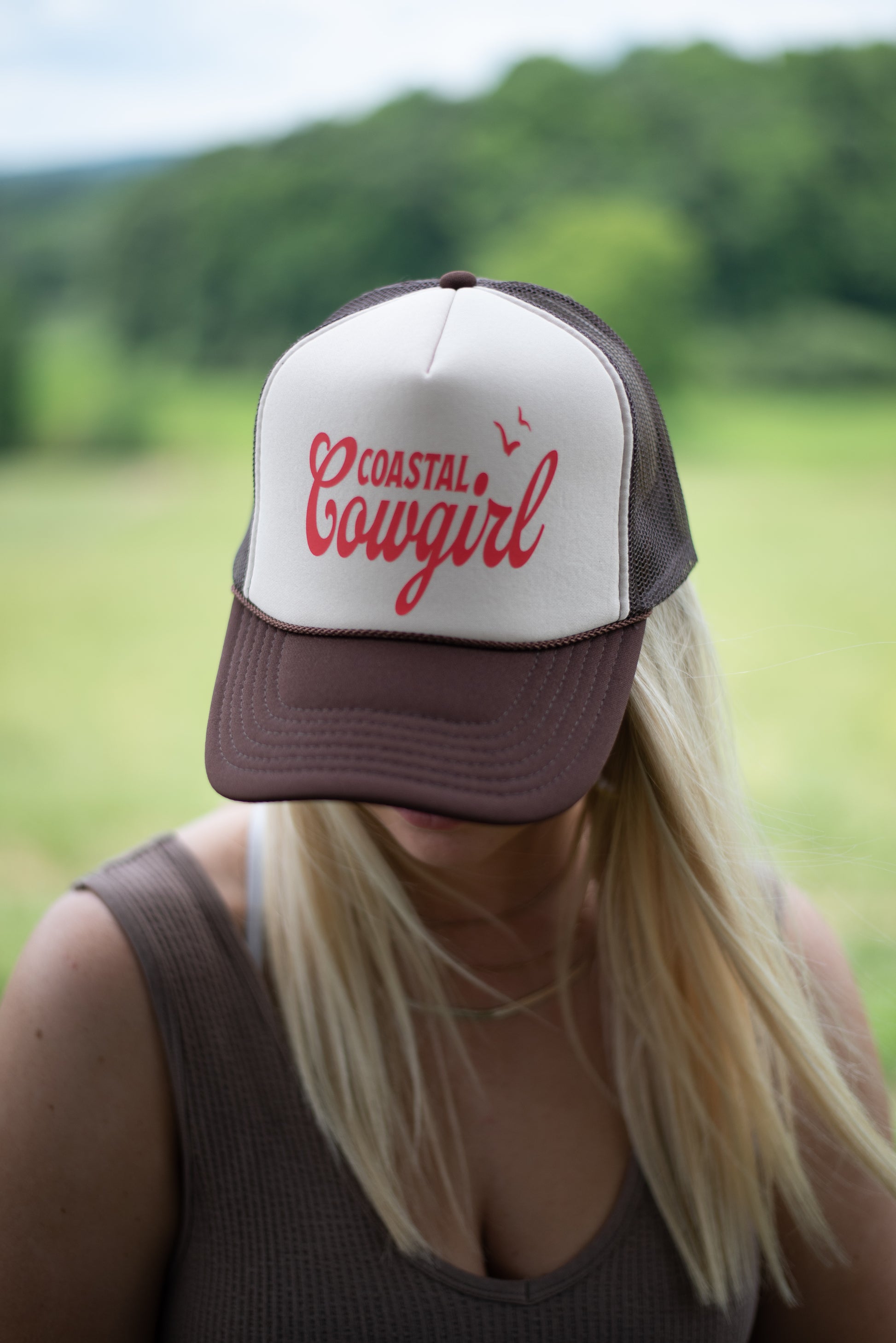 "Coastal Cowgirl" Trucker Hat - Brown/Tan
