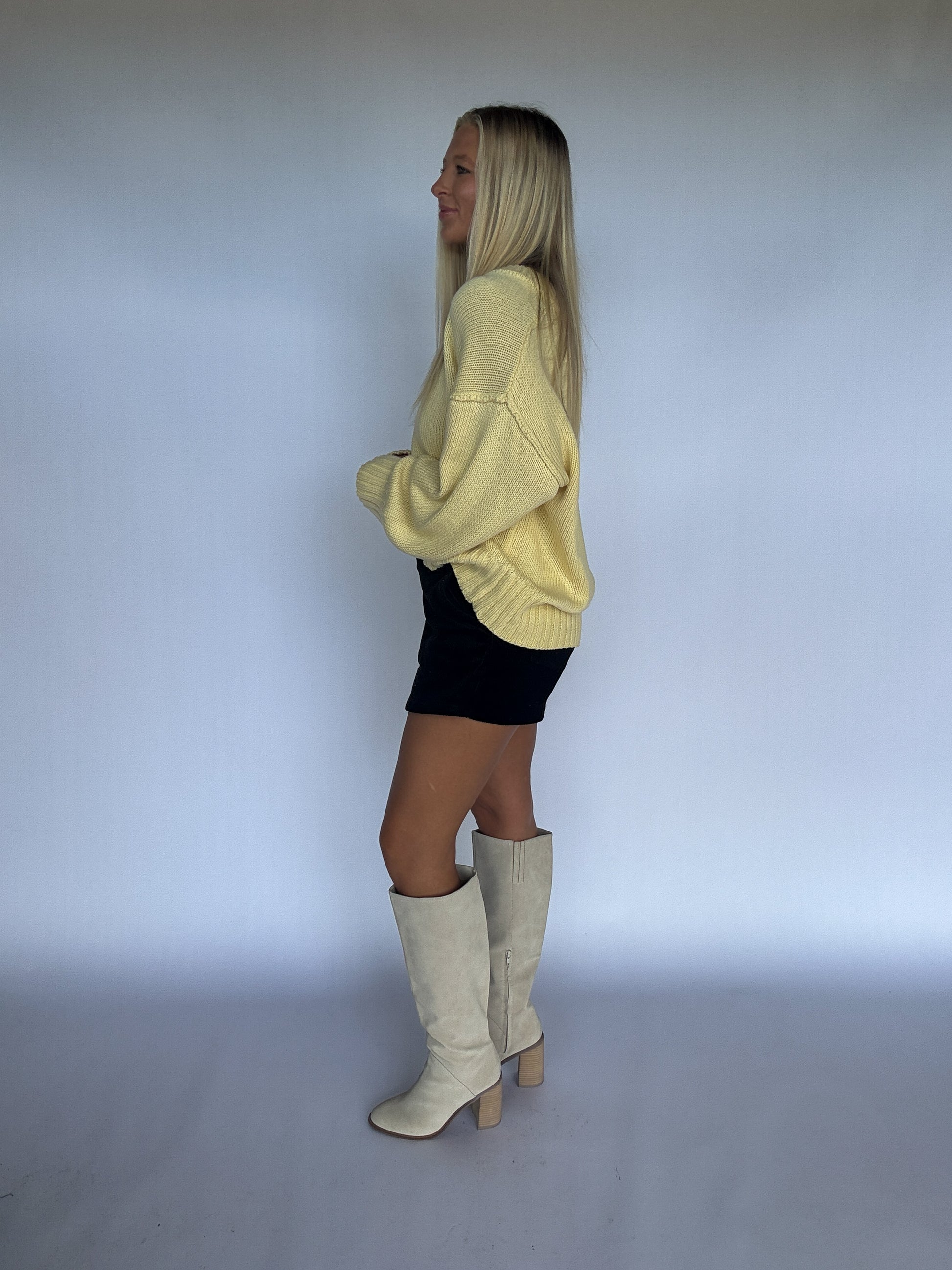 Embrace cozy elegance this fall and winter with the Duke Sweater in Lemon. Its warm, vibrant hue adds a fresh touch to seasonal wardrobes, while the smooth knit fabric offers comfort and insulation against the chill. Designed for both style and practicality, this sweater pairs effortlessly with layers or stands out on its own, making it a versatile staple for cooler months.