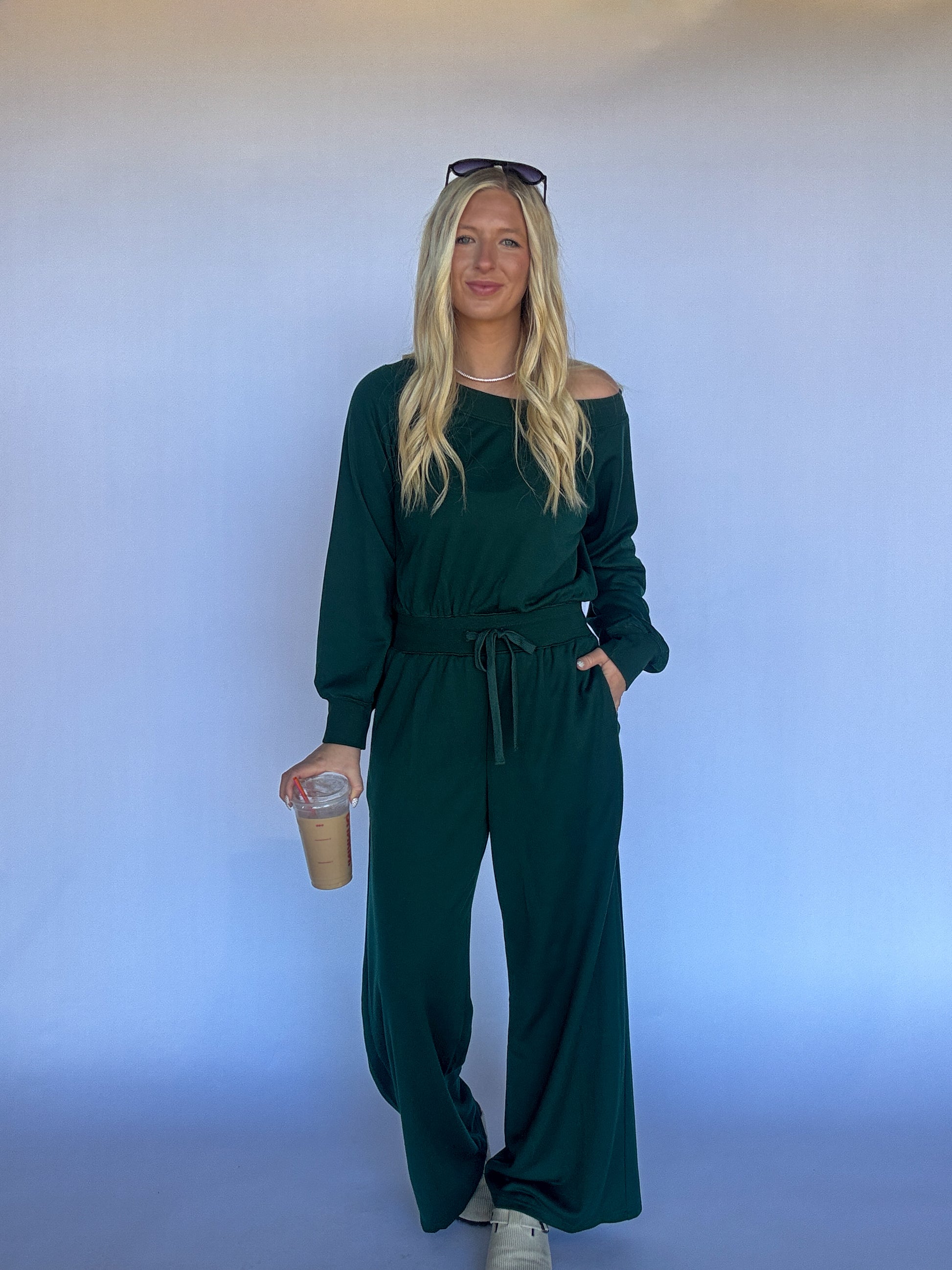 Experience effortless style with the Meg Knit Jumpsuit in Hunter Green. Designed for all-day comfort, its soft knit fabric offers a cozy, breathable fit that moves with you. The silhouette is thoughtfully crafted to balance a relaxed yet flattering shape, making it an ideal choice for both lounging and casual outings.