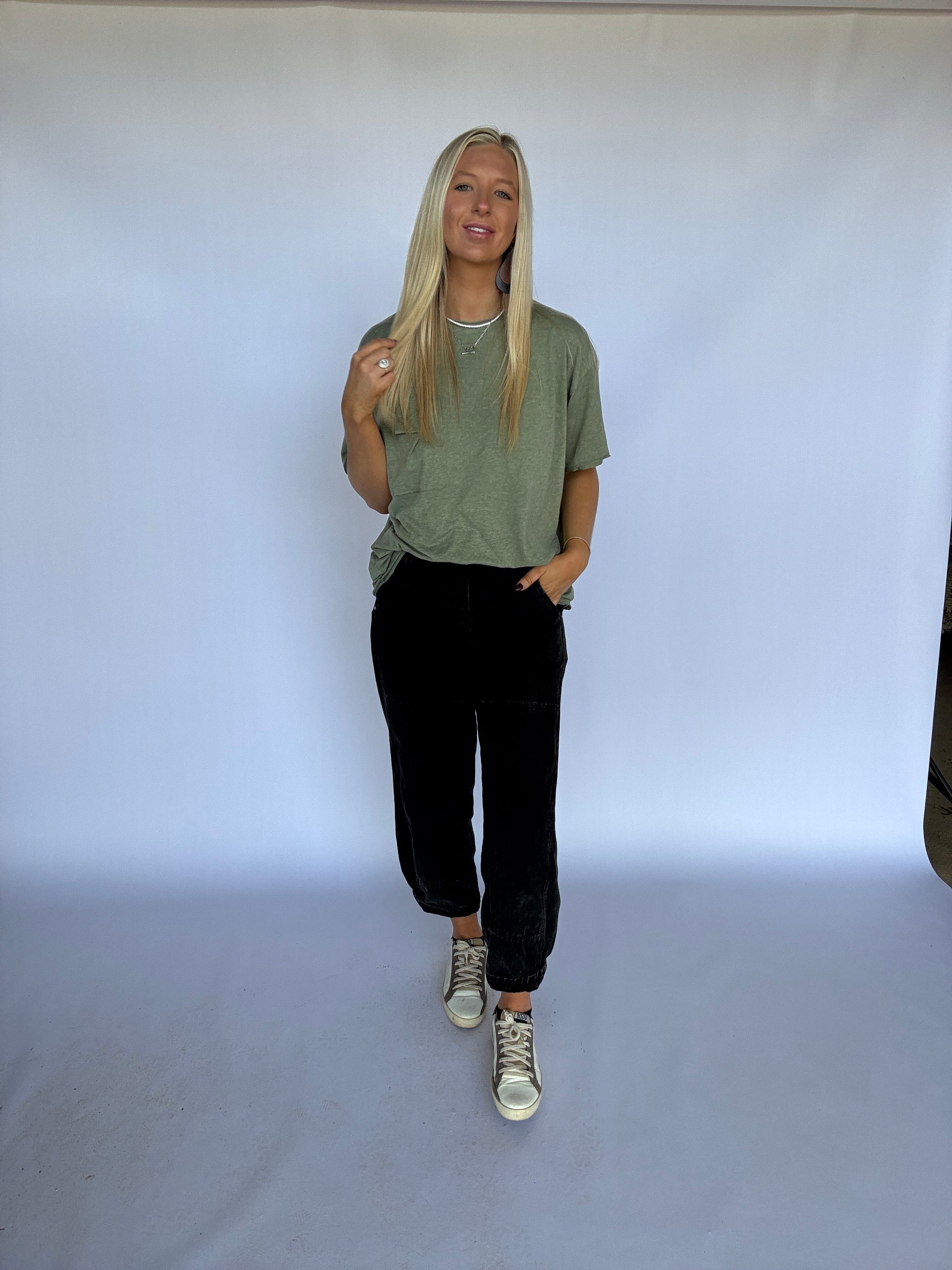 Experience effortless style and comfort with the Oversized Boyfriend Basic Tee in Olive. Its breathable fabric ensures all-day comfort, making it an essential layering piece or a standalone staple. Designed with expert attention to fit and simplicity, this tee balances function and fashion for everyday ease.